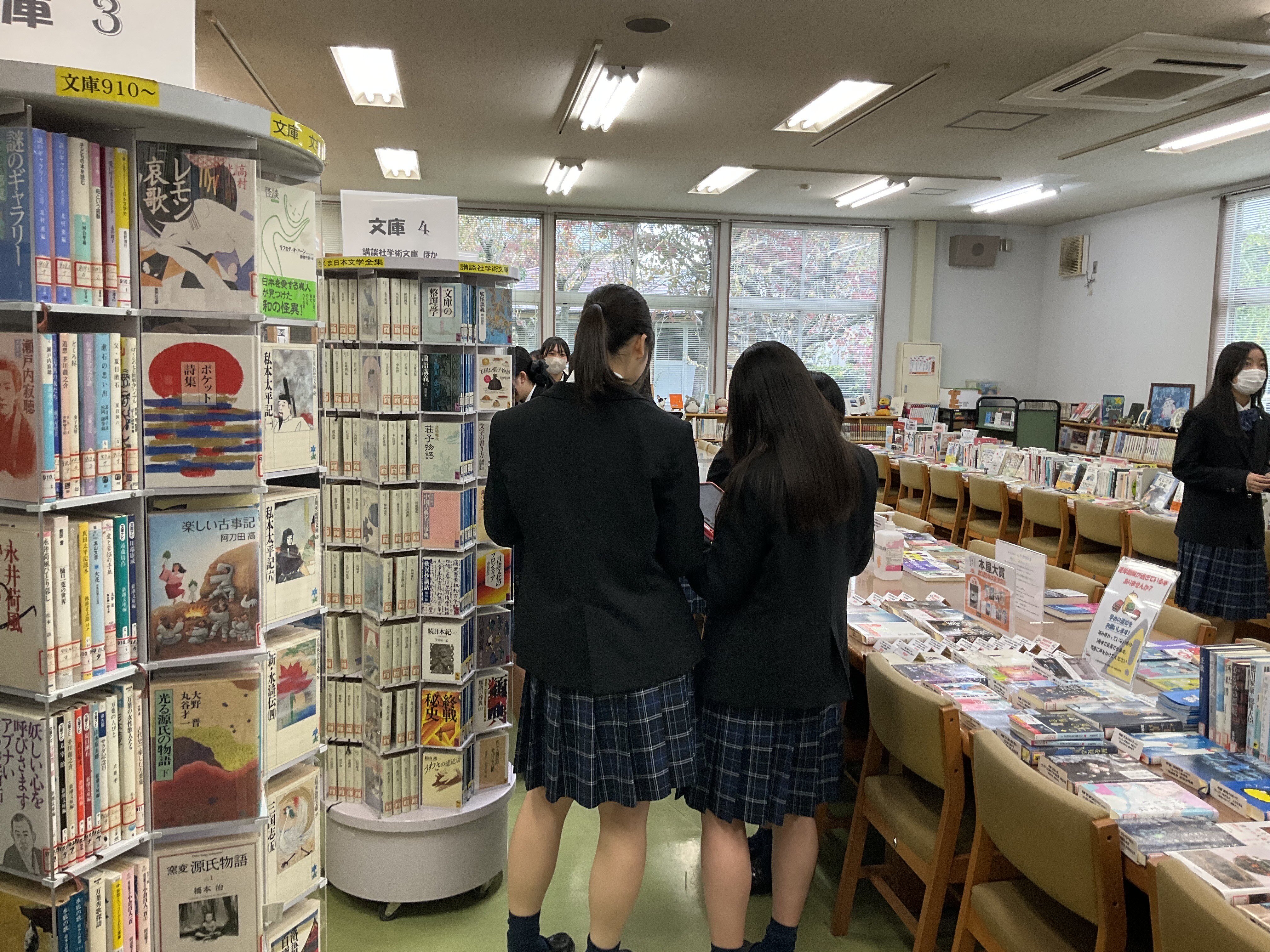 探究学習の時間では、論文の執筆に向けて今年度は論文のレジュメを作成します。各自がそれぞれの「テーマ」「問い」を設定し、探究していきます。図書館も利用する生徒で混み合っていました。