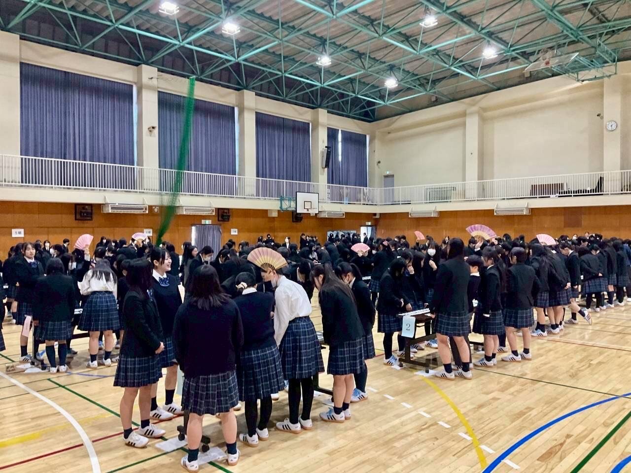 先日、1年生はカルタ大会を行いました。各クラス、事前に百人一首を覚え、大会に臨みました。上の句が詠まれると激しい札の取り合いとなり、競い合いながらも楽しめた様子でした。